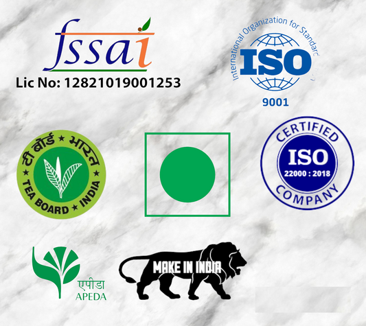 Buy NowWe're Authorised by ISO22000-2018, ISO9001-2015, GMP,MSME, STARTUPINDIA, FSSAI, TEA BOARD and APEDA