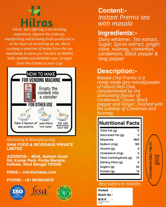 Instant Premix With Masala Tea 1 kg Pack.