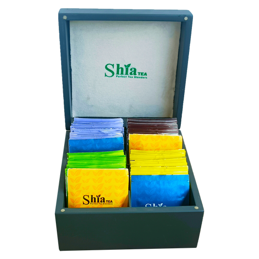 Assortment of 4 Favourite Teas in a Wooden Gift Box I Shia Tea Wooden Chest